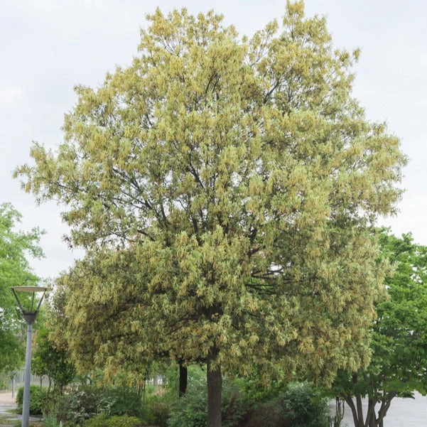 Le chêne vert est l’un des arbres les plus majestueux et les plus imposants qui soient. Dans un jardin, il apporte de la consistance au décor et une certaine sobriété par sa carrure imposante. Originaire des terres côtières du bassin méditerranéen, le chêne de son nom latin « Quercus Ilex » est l’une des 600 sortes de fagacées qui poussent en France. Connu pour sa résistance, le chêne est aussi réputé pour sa durée de vie impressionnante : de quelques décennies à des centaines d’années suivant la région ! Le tronc du chêne vert est assez court et recouvert d’une écorce fine, presque laquée. Son feuillage est dense et s’étend en arrondi sur un périmètre de 15 mètres autour du tronc. Les feuilles sont caduques, joliment teintées d’un vert olive sur la face supérieure et d’un gris pubescent sur la partie inférieure. Les feuilles du chêne vert changent de forme en fonction du climat ; en zone aride, elles sont pourvues de dentelures alors qu’en milieu plus tempéré, elles en sont dépourvues.