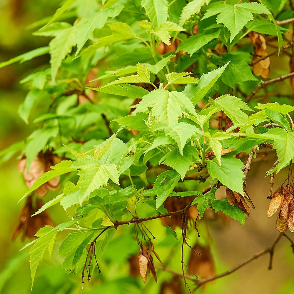 L’acer ginnala est un arbuste originaire d’Asie, popularisé par la possibilité de le cultiver en bonsaï. Atteignant à sa maturité une hauteur de 4 à 5 m, il resplendit par un feuillage caduc qui passe du vert printanier, au jaune estival, pour finir au rouge flamboyant en automne. Ses fleurs très parfumées atteignent une taille de 3 cm en été, caractérisées par une couleur blanche tirant vers le blanc crème. Elles pendent en forme de grappes pour ensuite se transformer en bouquets de fruits ailés d’un très joli rose vif.